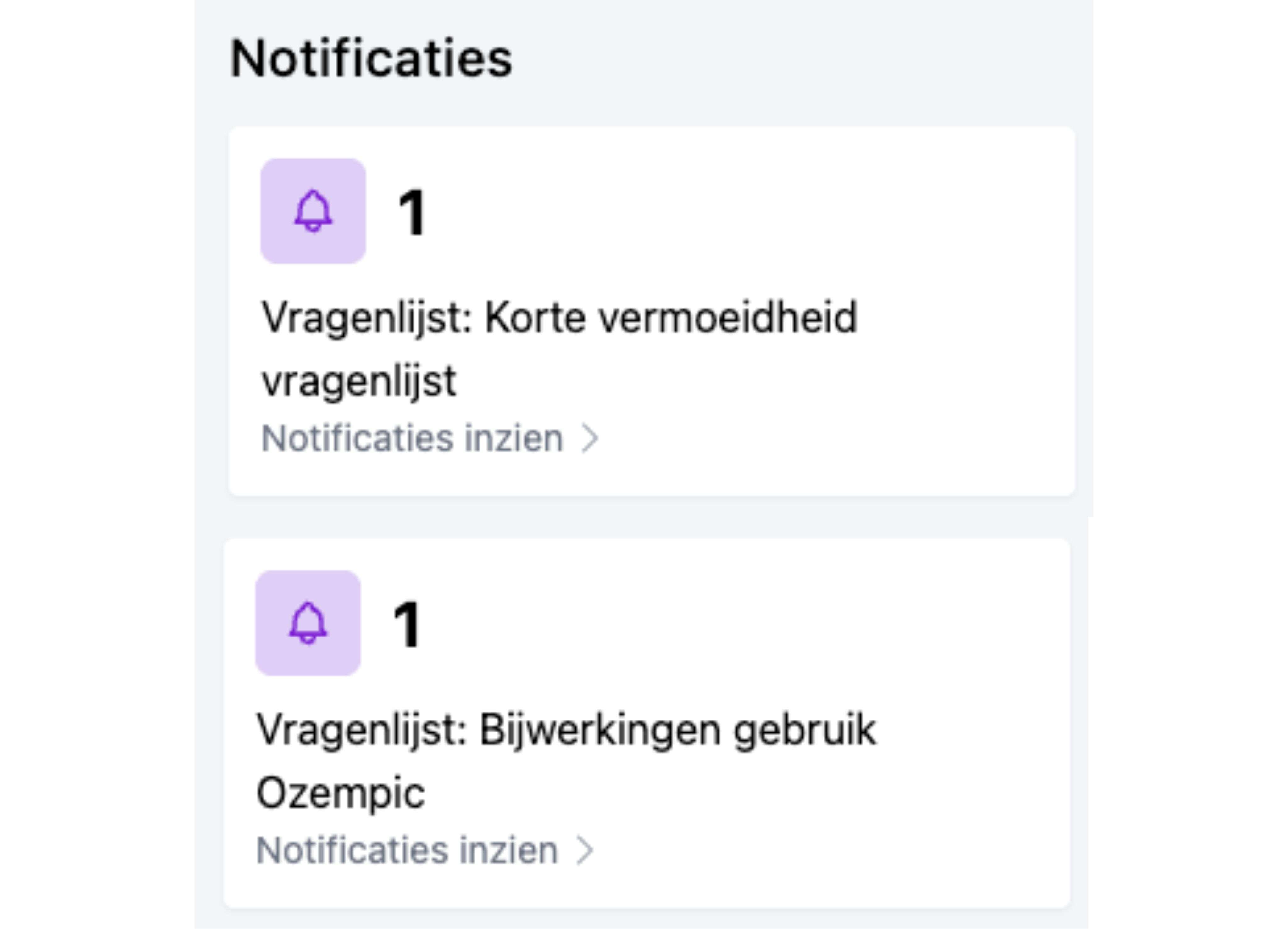 Zeker. Nieuwe of openstaande vragenlijsten en afwijkende biometrische, cardiovasculaire of respiratoire metingen verschijnen automatisch in het dashboard. Desgewenst kunt u notificaties instellen of specifieke grafieken activeren.